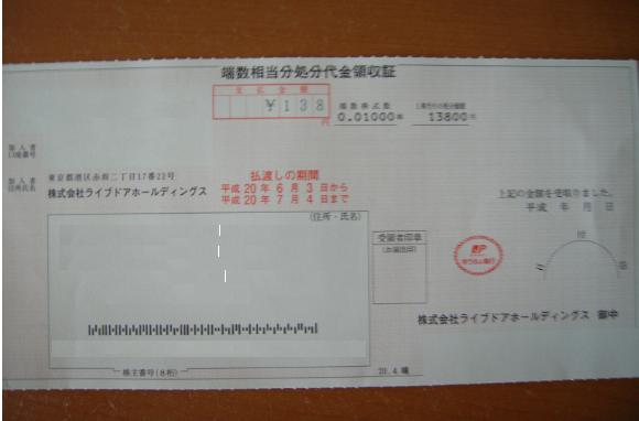 ◆端数相当分処分代金領収証◆が送られてきてたw