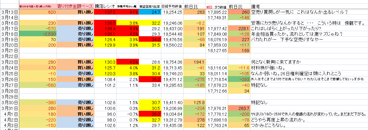 上がっては下がって。結果ヨコヨコな感じっすかね。