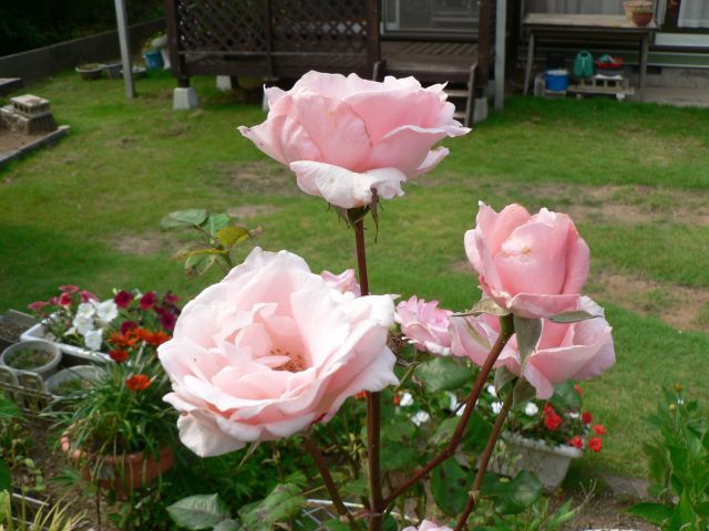 バラとザクロの花&株忘れて植木手入れ&草抜きに汗