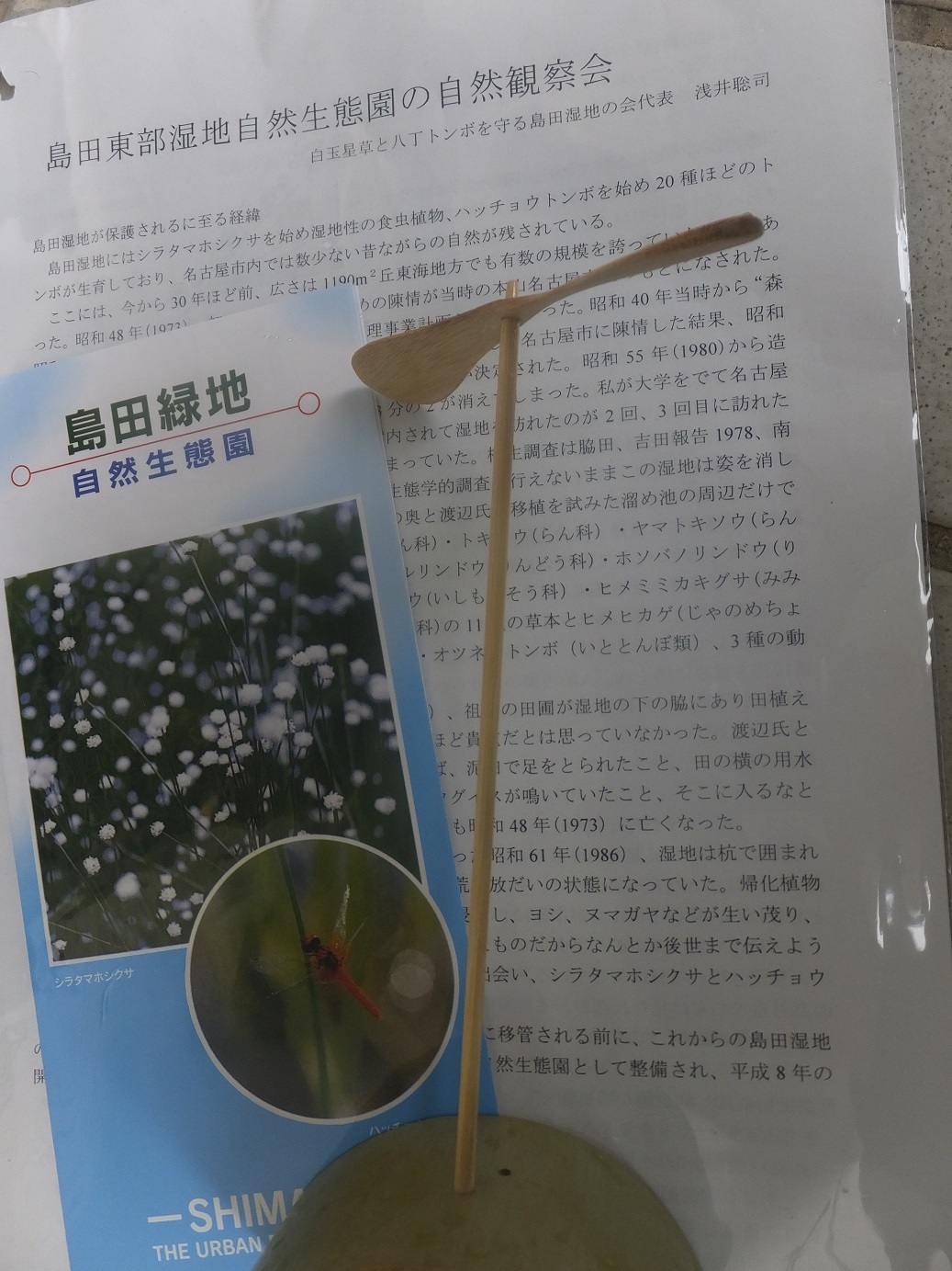 ハッチョウトンボが東山植物園で見えなかったので、平針の近く島田緑地にでかけたら、