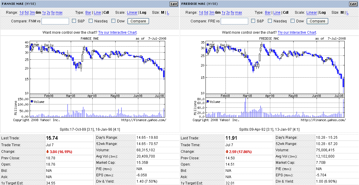 原油価格の下落を好感して米株は上昇して始まったのですが、ファニーメイとフレディマックの追加増資懸念や、メリルリンチの追加損失計上に伴う保有株売却報道などが嫌気され、金融株中心に売られました。