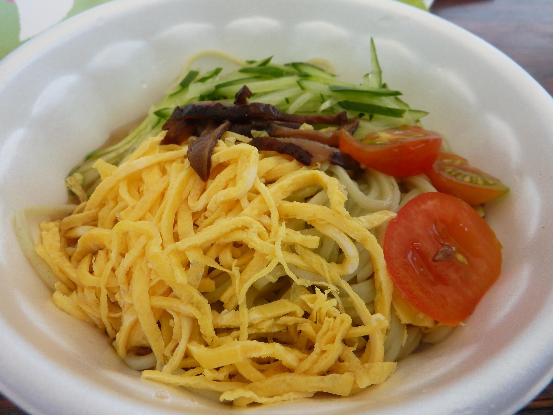 ゴール到着後、モロヘイヤどんぶり、冷し麺を頂いて、大食いの私でもおなかがいっぱいになりました
