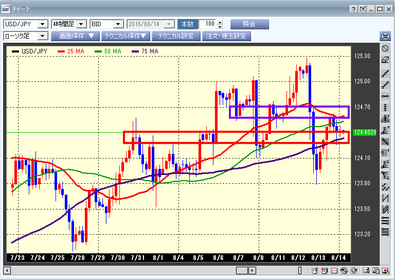前日、下からの戻りで124.60を抜けれなかったことで、