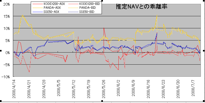 中韓ETFの気配値と推定NAVとの乖離率