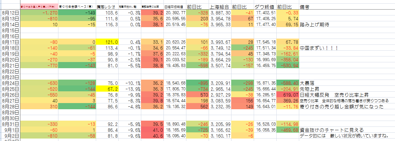 みると やはり外人寄り付きマイナスが続いてる。意識として 資金が抜けていく方向かな。