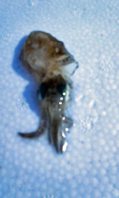 すまん悪いことしたがな♪とどかんとおもい放たれたホコくんが命中したアオリイカの子5cmぐらい
