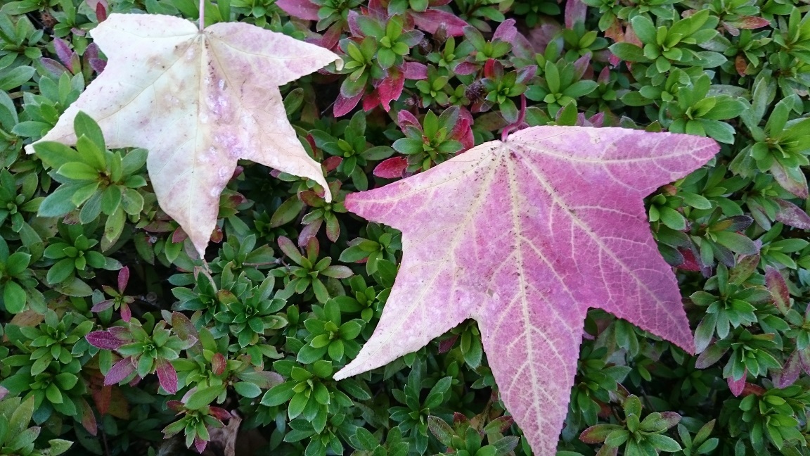黄色い葉っぱにでんでんむしが乗ってたりしました。