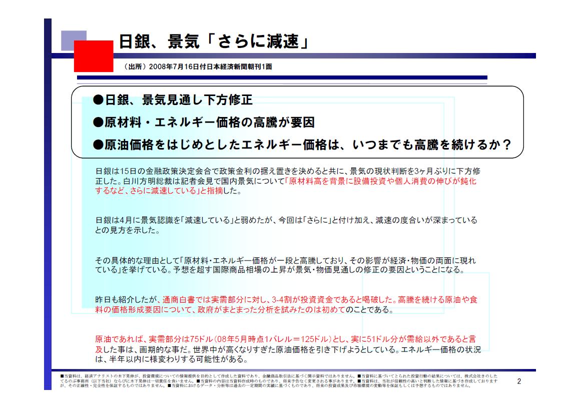 「原材料高を背景に設備投資や個人消費の伸びが鈍化するなど、