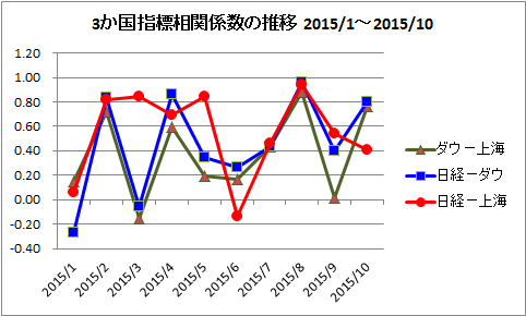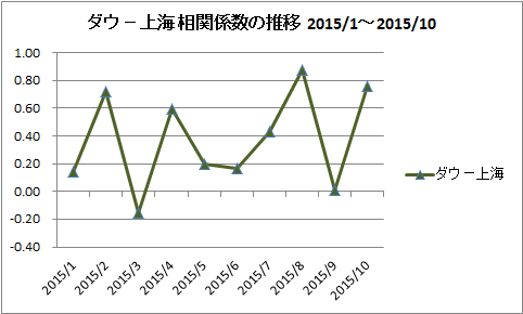 もう一つ、NYダウと上海の相関係数の推移です。