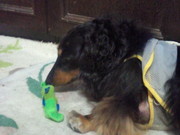 クゥタの腫瘍は大きい、そこに、レヨサンの22.5をつけると、かゆいのか、あるいは注射したところがかゆいのか、、このこのごろ、じゅーたんで、すりすりと、