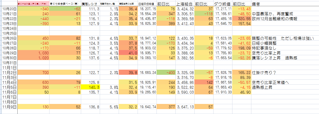 多少押そうが、 引こうが 強気はかわらず。しかし数値の状態から 大きなきっかけが発生すると暴落も視野に。暴落シグナルには気を付けておこ。