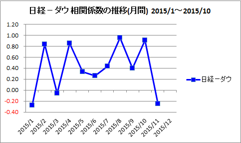 日経平均-NYダウの月別の相関です