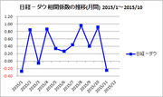 次は日経平均ー上海(総合指数)の月別の相関