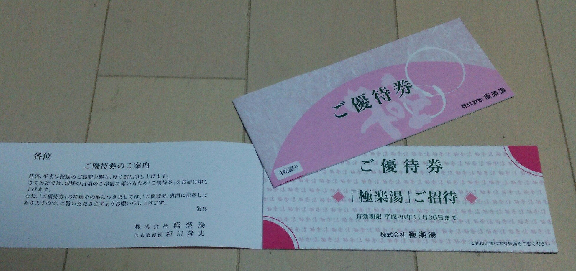 極楽~の優待券が到着。(*´・ω-)b。