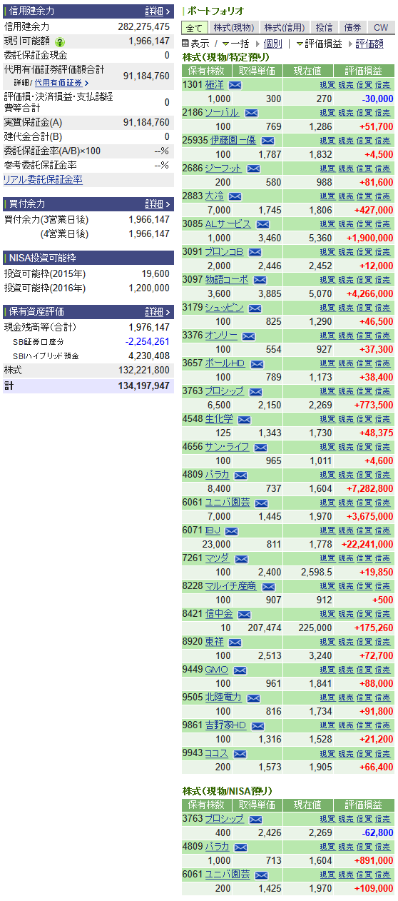 2015/12/7 14126万 (=日本株13420万+米国株706万) (前回比 +373万)