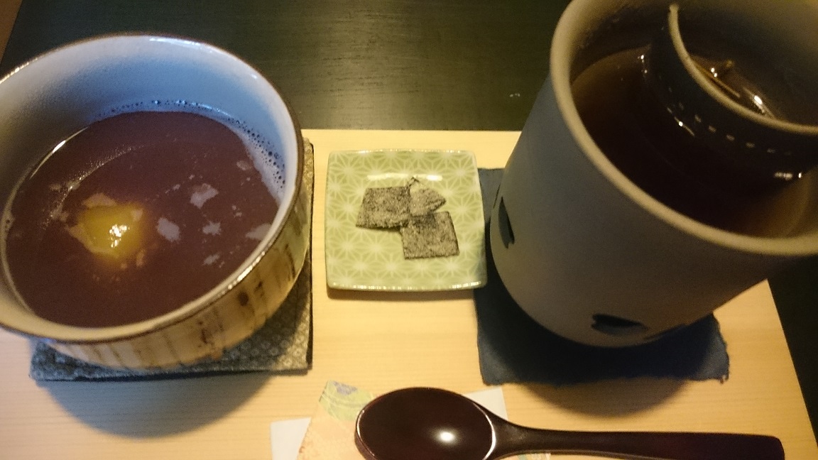 それを、ぜんざいの甘さで、