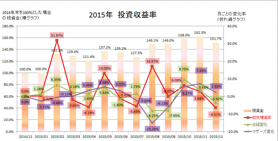 まずグラフの通り2014年末と比べて151.7%ということで、今年の収支は+51.7%である。