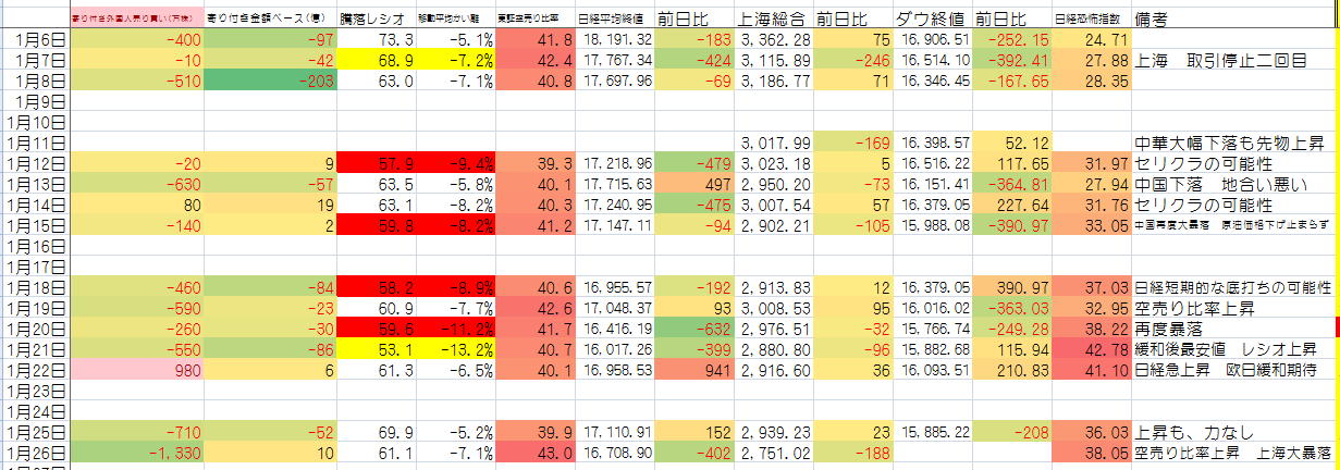 寄り付きの大売り越しの連発。空売り比率は常に高い数値。