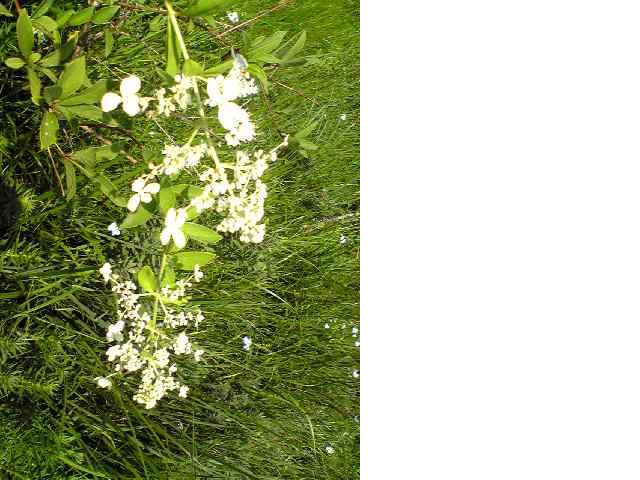 白い花、涼しさを感じます、右側ヒヤシンスにチョット似ていますね。