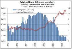 在庫件数は販売実績の11.1カ月分にあたる449万戸となり、前月から0.2%、前年同月から2.8%それぞれ増えた。住宅の中間価格は21万5100ドル(約2300万円)で前月から3.5%上昇したが、前年同月からは6.1%低下した。