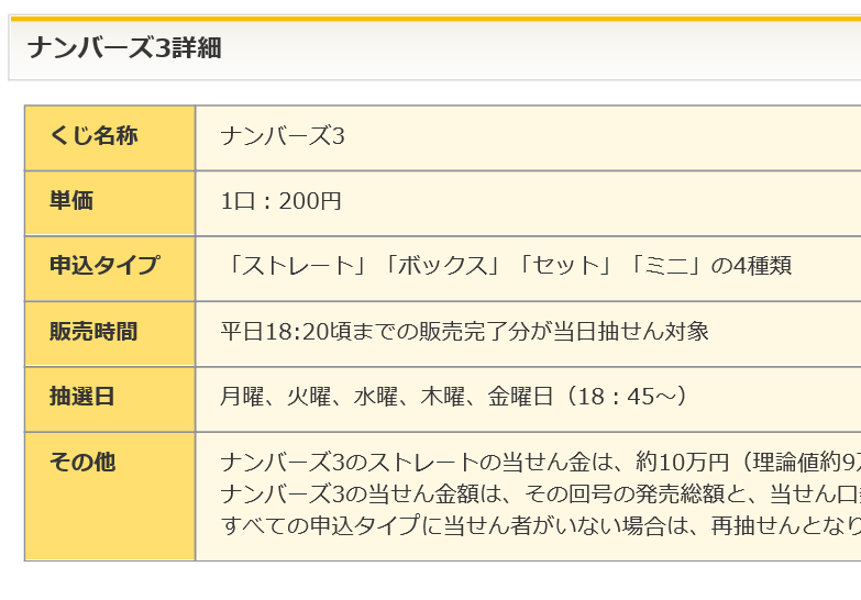 ナンバーズ3の当日分、購入締め切り時間。
