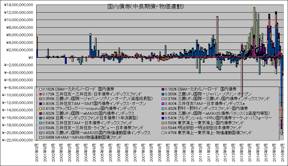 インデックスファンドの月毎の資金流出入額を、まとめました。