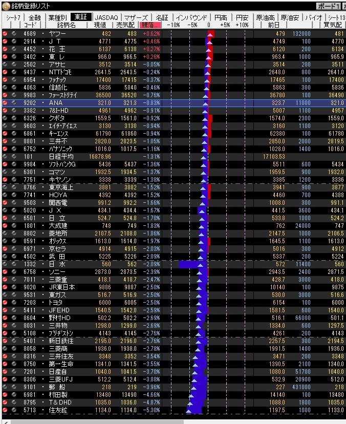 昨日同様の動きであるが、これも下落基調を示唆していると思えてしまう。