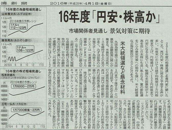 4/1の朝刊で、4/1の暴落前の記事ですが、えらく強気です。