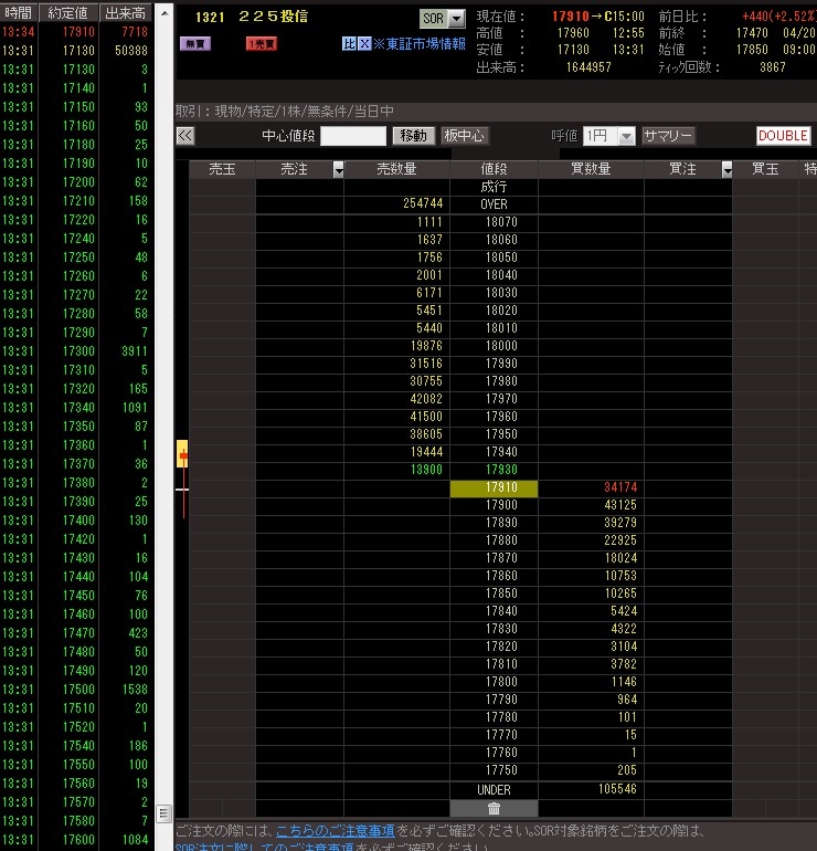 暴落したことに気づいたアルゴが、17130円で全部買ったということだろうか。