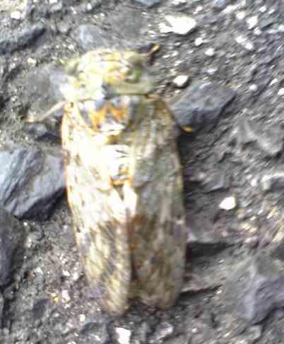 ニイイニイゼミです。このセミは昔は家の松に鈴なりにいましたが。乾いた路面からは出れないので減ってきました。いまや幻のセミになりそうです。最近でも声はすれども実物を見ることはほとんどなかったです。偶然道路に止まっていました。今度いつ会えるでしょうか?今年、東京でも見なかったです。