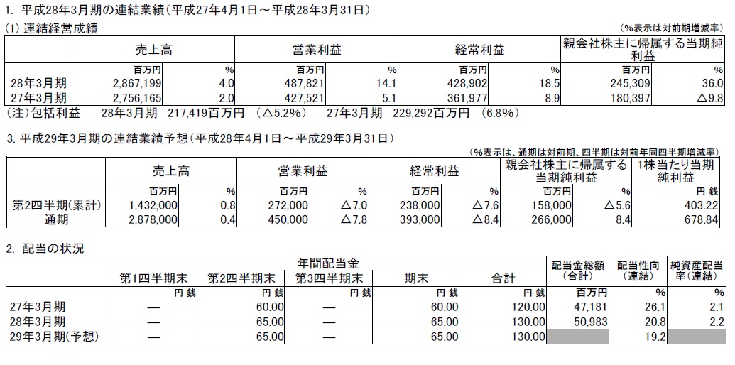 ③配当は28/3月期は増配も29/3月期は据え置き。