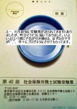 福田改造内閣に舛添さんの留任だけを期待してて、まぁそうなってどうということでもないけれども、世論調査↑(リンクね)の結果からしても大した人事でなかったようである。麻生さんの幹事長起用だけでポイントが3つほど上がったらしいけどね。まぁ、麻生さんは口がちょっと曲がってて云々てよく言われるけれど、ここで衝撃的事実を告白しよう 上の画像は社労士の受験票なのだけど、明日には行政書士の試験申し込み受付が開始する。前準備として、証明用の顔写真を携帯電話のカメラで自分撮りしてて、驚愕した ここでその衝撃的画像を公表できないのが残念であるが・・・俺、顔が歪んでるよ 麻生さんみたく口だけならいいけど、ほんとお見せすることが出来なくて残念だ。8/24、どこかの試験会場で歪んだ顔の男がいたら、サイコかも?と思ってくれ。更に驚くべきことも新たに発見した。どっかで見たことのある顔だ、うーーーん、誰だったっけ・・・歪み顔ネタと合わせて、試験終わったら飲み屋で盛り上げるんだけどなぁーーー。ぎょ、康夫ちゃん?、現総理に瓜一つ。ううぅ、俺の支持率も下がりそうだ あっ、ザ・ニュースペーパーに弟子入りしようか。ギャグでなんとか持ち応えられるかもしれない。