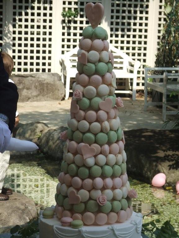 >薄いピンクと薄い緑のマカロン☆ケーキカットはどうするんだろう?!と思っていたら、
