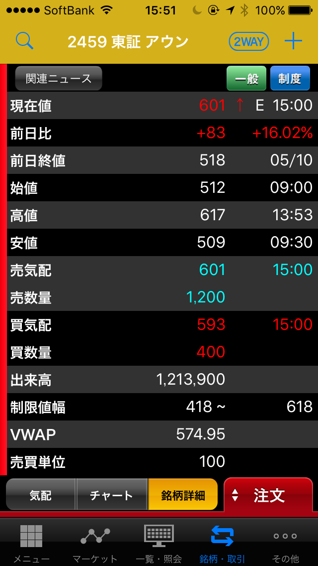 貸借0.5倍の大幅な売り長であり、貸借取引で注意喚起が発表されるなど、踏み上げの展開となっています。