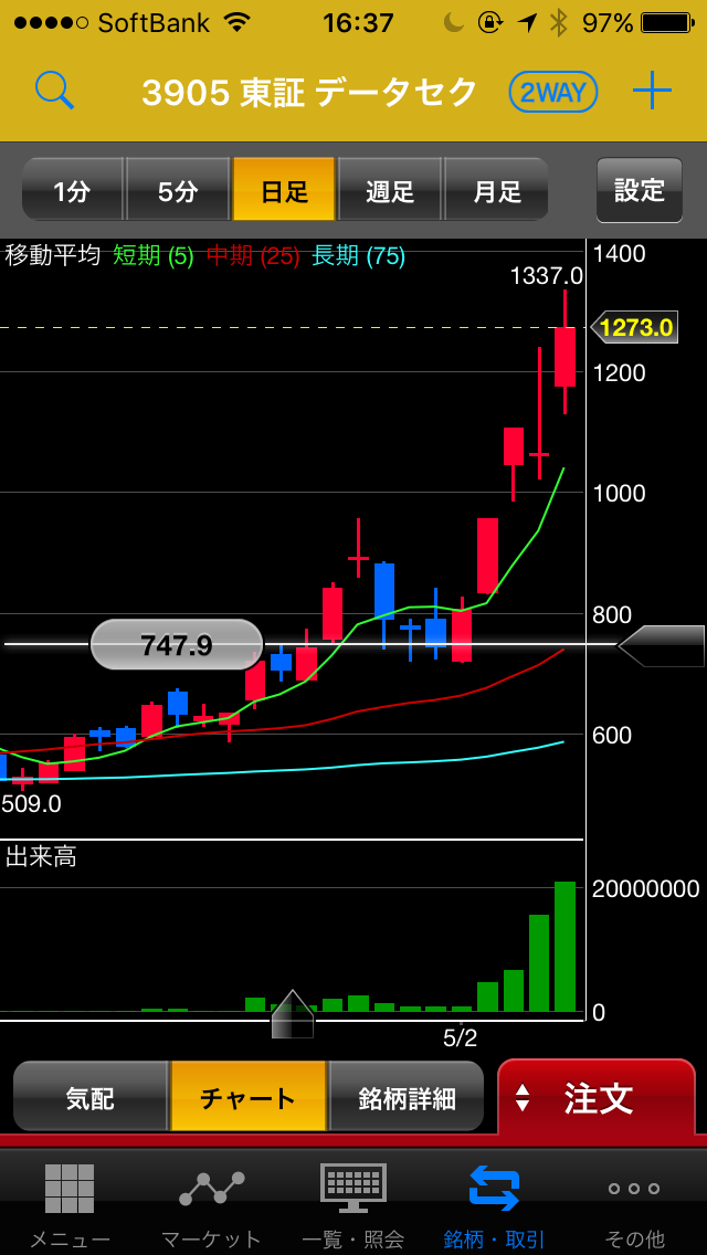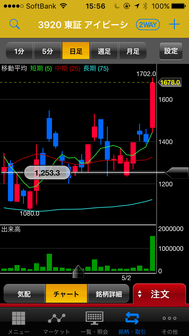そのリズムの刻み具合で、上場来高値1,730円チャレンジ出来るかが決まりそうです。