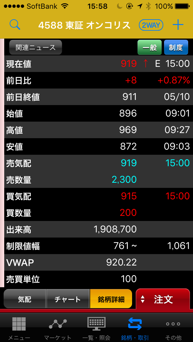 ★4588 オンコリスバイオファーマ(がん治療・バイオ関連)
