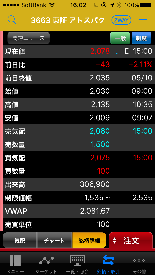 2,000大台乗って来ますと、上場来高値 3,075円まで上値スカスカです。