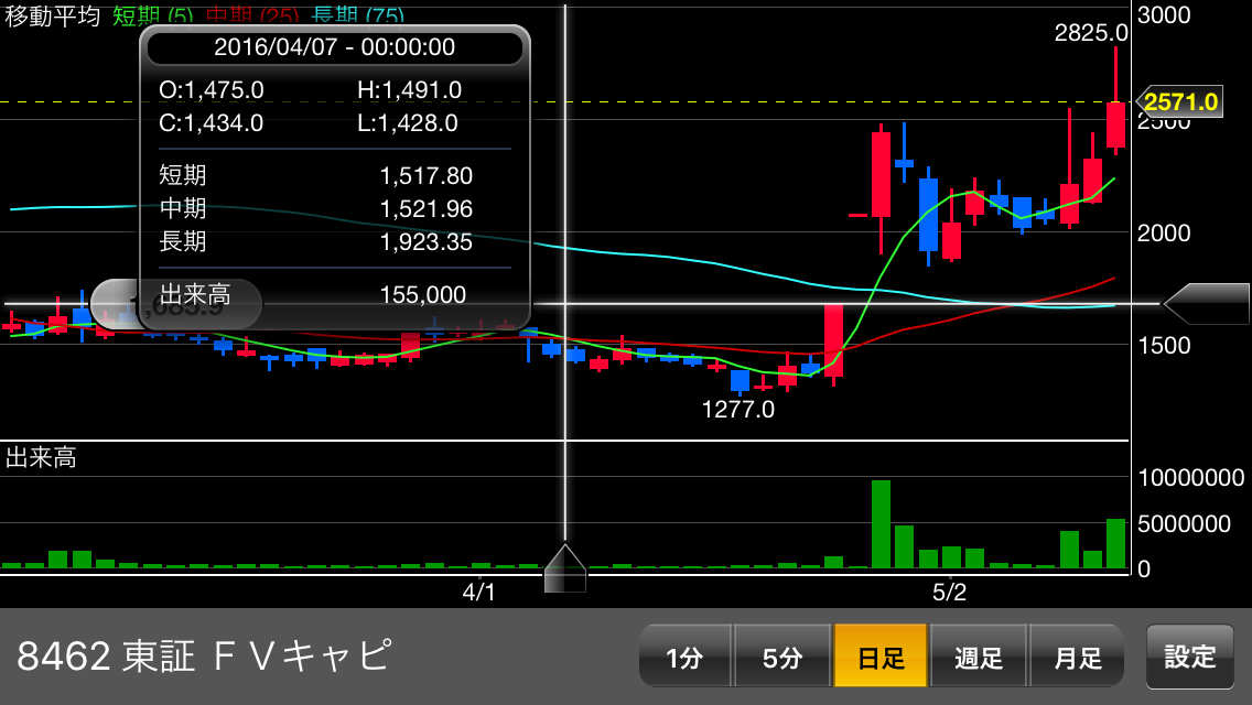 1,200円前後を下限目安に2,000円方向。2,000円大台乗ると上場来高値3,075円まで上値スカスカ。