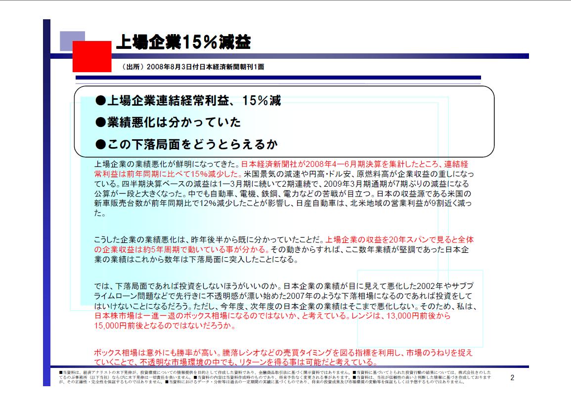 1.上場企業15%減益