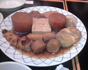 そして2次会のおでん屋へ。たまごとだいこんさんとか、はんぺん太郎さんとか、おでん関係の名前の人って、みんかぶに多いね~とか言いながら、おいしいだいこんを食べまくり。写真で、味のしみただいこんのおいしそうな感じ、分かりますか?