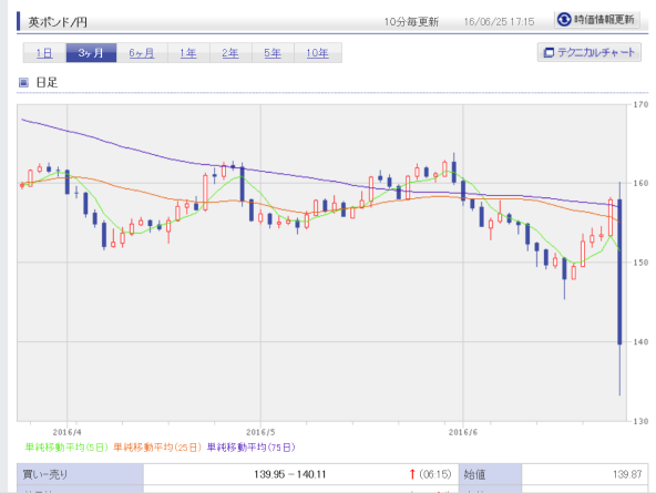 2016年6月24日金曜日のポンド安値135.136056