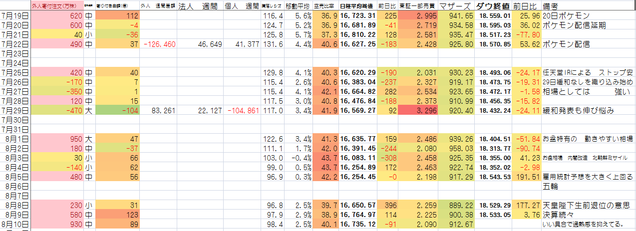 とりあえずデータだけど まあとくに明日も 今日と変わらんのかな。