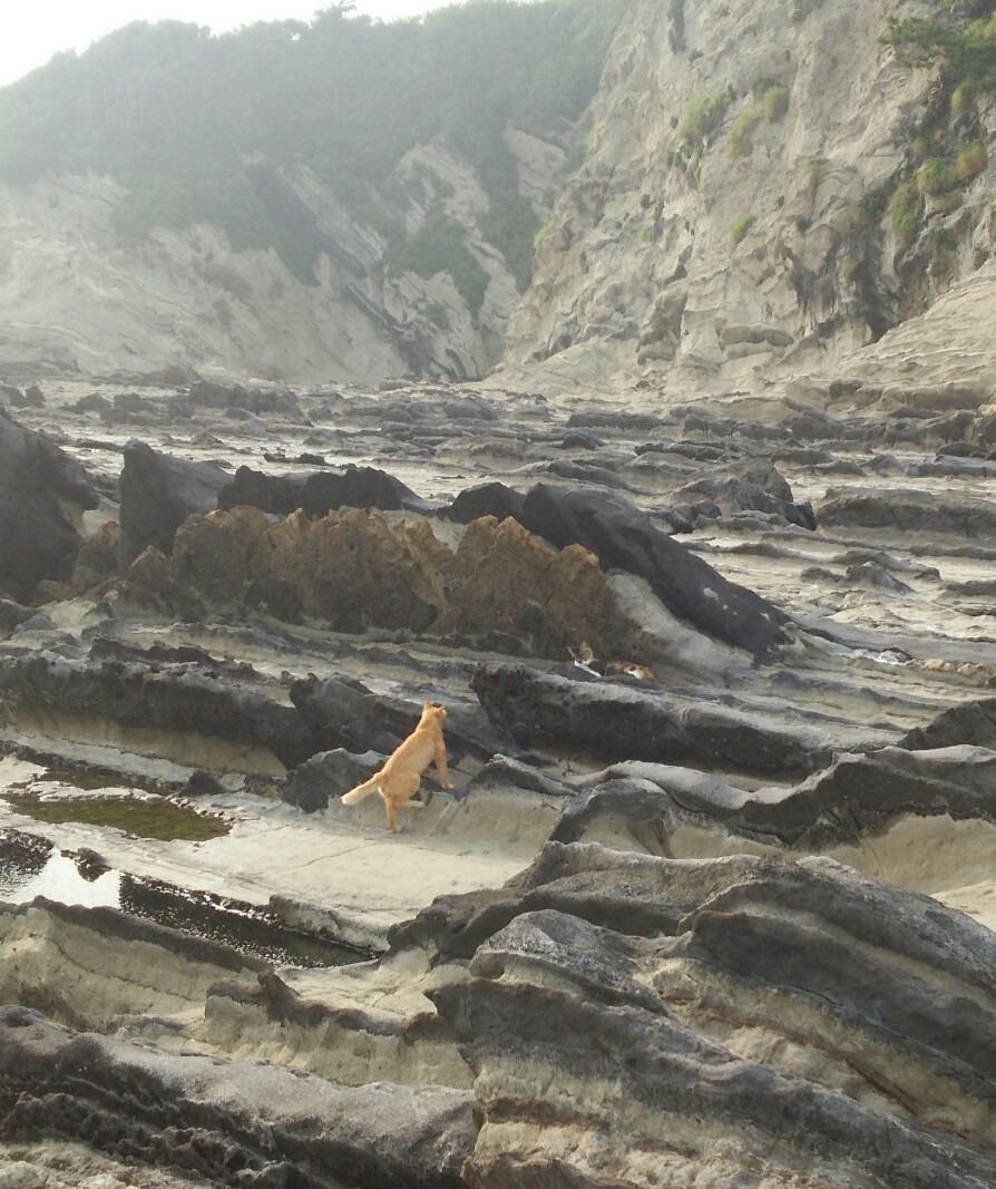 せっかくの獲物をとられちゃいましたね。それにしてもどこだか分かりませんが凄い地形の所ですね。まさかこんな所ににゃんこ