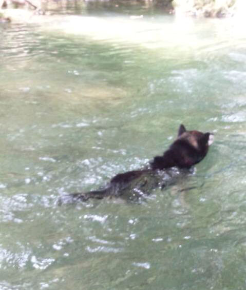 そりゃあ滝壺でワンちゃんが泳いでいたら誰でも驚きますよ