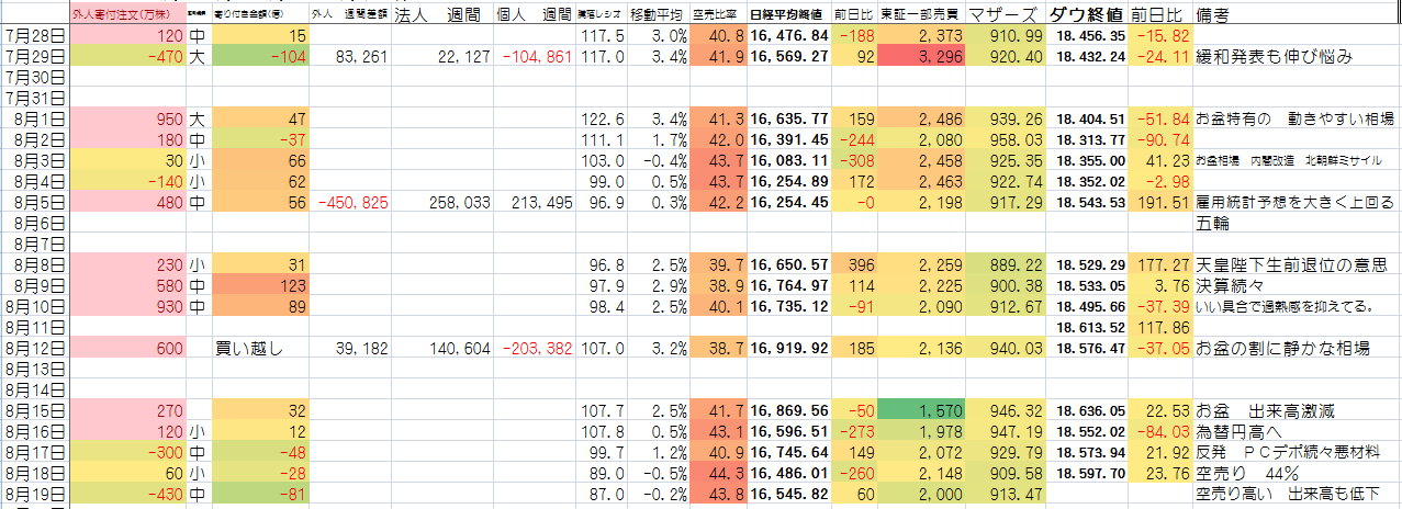 こんばんわ、弱い順に売り、先週順番間違えた、あはは