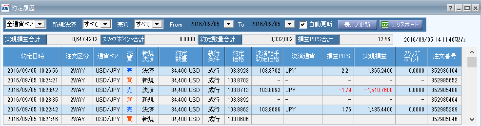 FXの今日の取引です。