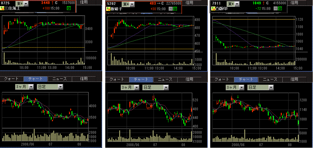 ファニーメイ、フレディマックの株価はじりじりと下がっています。鉄鋼株も日本と同様、弱い動きです(画像1、右下)。