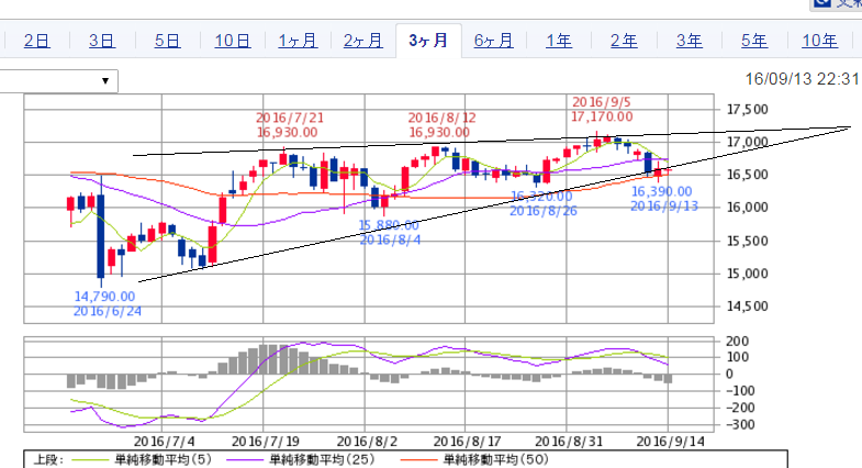 日経は、5日線の上に日足がきれーに出たら、