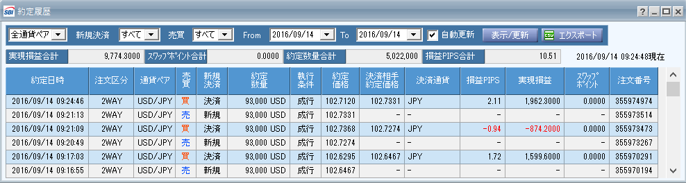 短期決戦の実況FX+10pips20160914