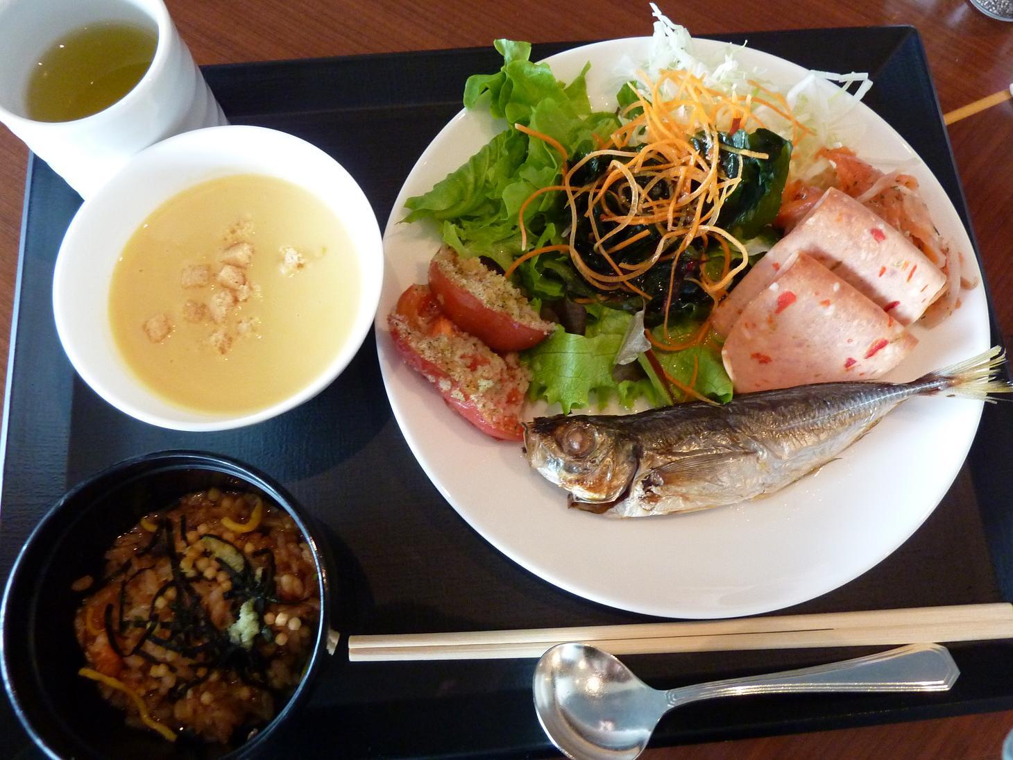 【和洋折衷】 ひつまぶし 焼き魚 サーモン ハム コーン・スープ